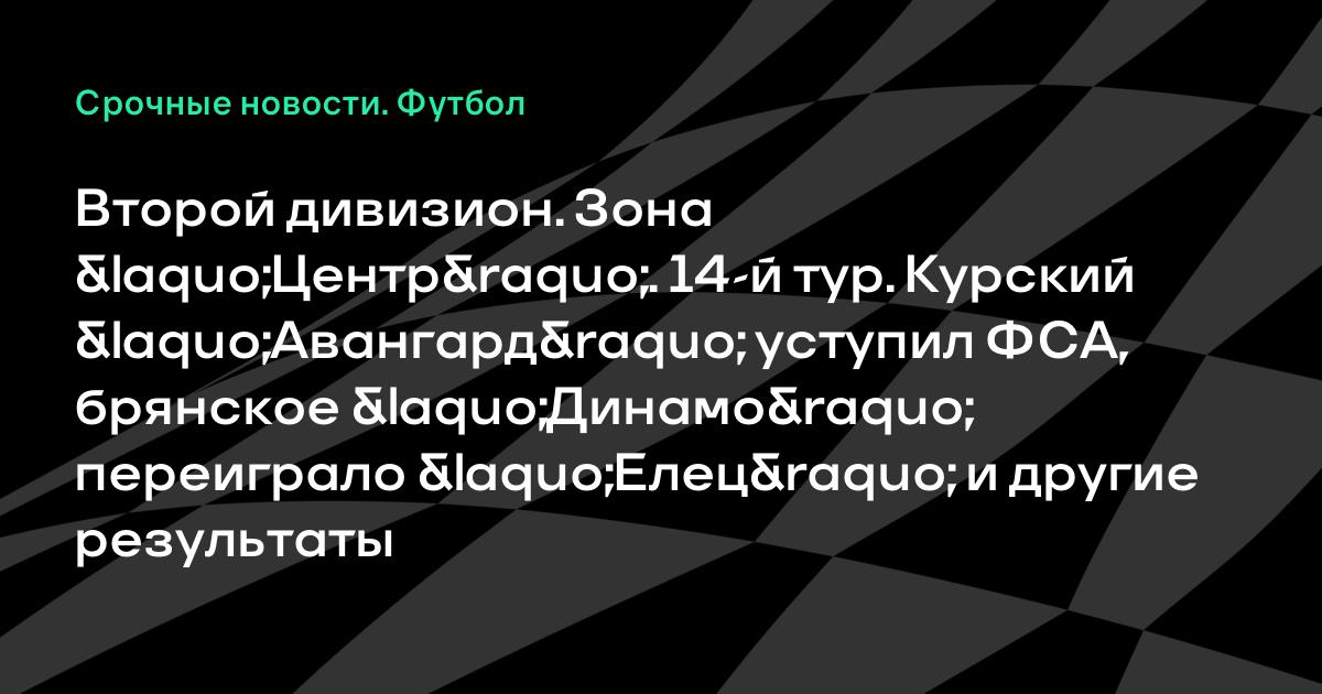 Второй дивизион. Зона «Центр». 14-й тур. Курский «Авангард» уступил ФСА, брянское «Динамо» переиграло «Елец» и другие результаты