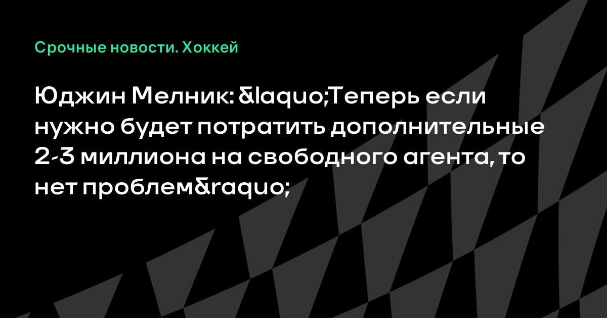 Юджин Мелник: «Теперь если нужно будет потратить дополнительные 2-3 миллиона на свободного агента, то нет проблем»