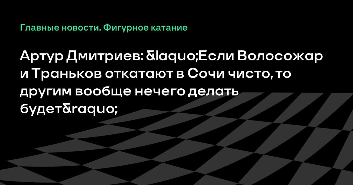 Артур Дмитриев: «Если Волосожар и Траньков откатают в Сочи чисто, то другим вообще нечего делать будет»