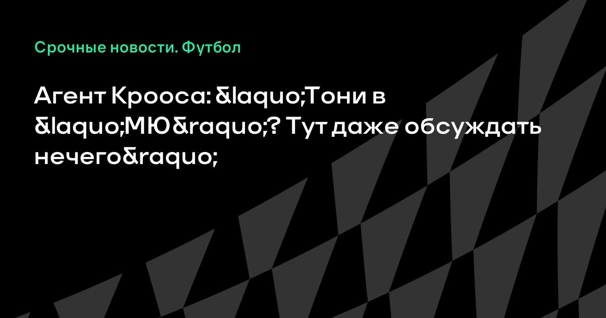 Агент Крооса: «Тони в «МЮ»? Тут даже обсуждать нечего»