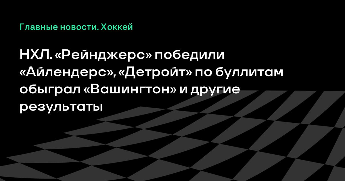 НХЛ. «Рейнджерс» победили «Айлендерс», «Детройт» по буллитам обыграл «Вашингтон» и другие результаты