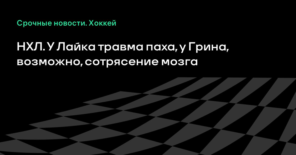 НХЛ. У Лайка травма паха, у Грина, возможно, сотрясение мозга