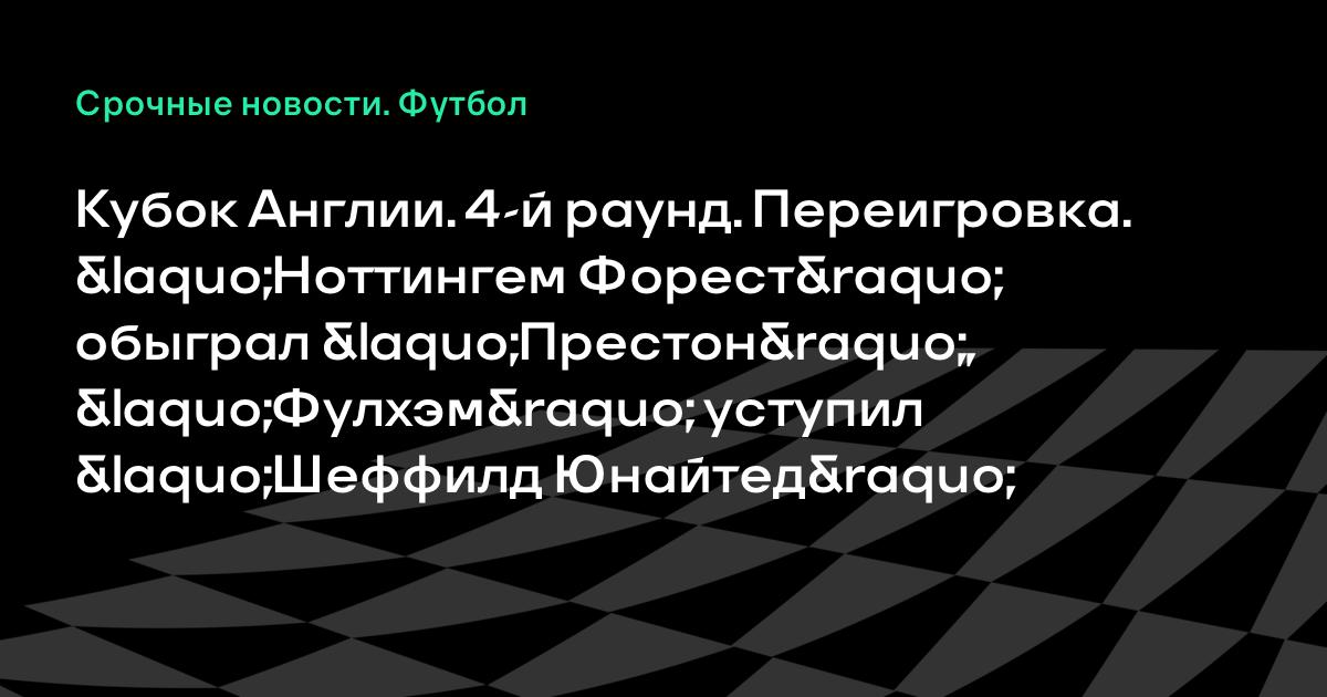 Кубок Англии. 4-й раунд. Переигровка. «Ноттингем Форест» обыграл «Престон», «Фулхэм» уступил «Шеффилд Юнайтед»