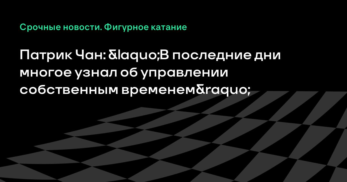Патрик Чан: «В последние дни многое узнал об управлении собственным временем»
