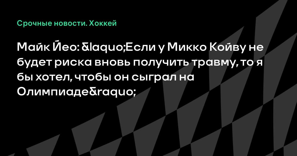 – Если врачи разрешат ему выйти на лед и если не будет риска вновь получить травму, то я бы хотел, чтобы Микко сыграл на Олимпиаде.