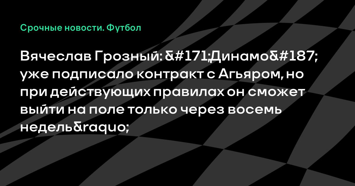 Вячеслав Грозный: «Динамо» уже подписало контракт с Агьяром, но при действующих правилах он сможет выйти на поле только через восемь недель»