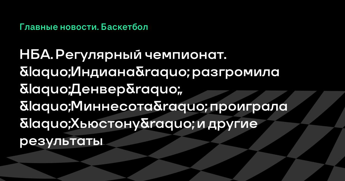 НБА. Регулярный чемпионат. «Индиана» разгромила «Денвер», «Миннесота» проиграла «Хьюстону» и другие результаты