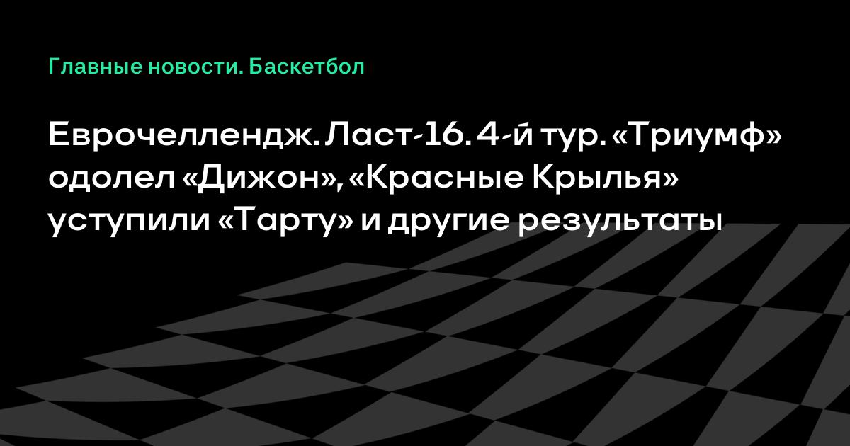 Еврочеллендж. Ласт-16. 4-й тур. «Триумф» одолел «Дижон», «Красные Крылья» уступили «Тарту» и другие результаты