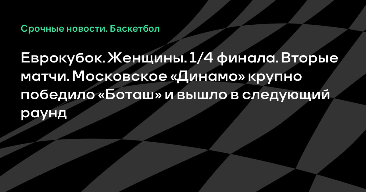 В среду, 12 февраля, московское «Динамо» во втором матче 1/4 финала плей-офф женского Еврокубка обыграло турецкий «Боташ» (79:53) и вышло в полуфинал. Первая встреча команд в Турции завершилась победой россиянок со счетом 72:64.