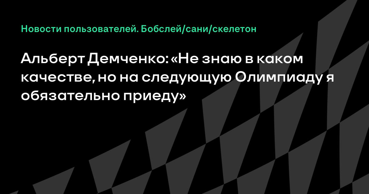 Российский саночник Альберт Демченко, ставший обладателем двух серебряных наград на Играх-2014 в Сочи, заявил журналистам, что обязательно поедет и на следующую зимнюю Олимпиаду, которая пройдет через четыре года в Южной Корее. Но не уточнил, в каком качестве.