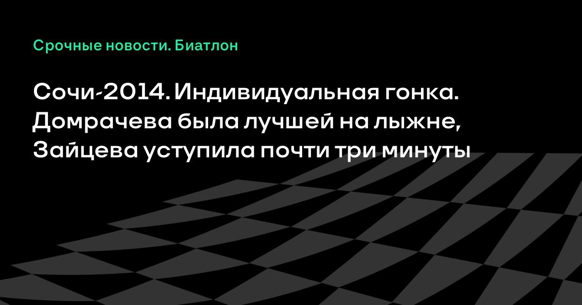 Двукратная олимпийская чемпионка Дарья Домрачева показала лучший лыжный ход в индивидуальной гонке на Играх в Сочи, Ольга Зайцева показала 22-й результат в этом компоненте, уступив почти три минуты.