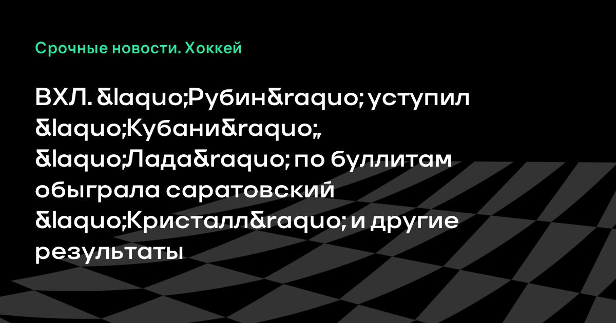 ВХЛ. «Рубин» уступил «Кубани», «Лада» по буллитам обыграла саратовский «Кристалл» и другие результаты