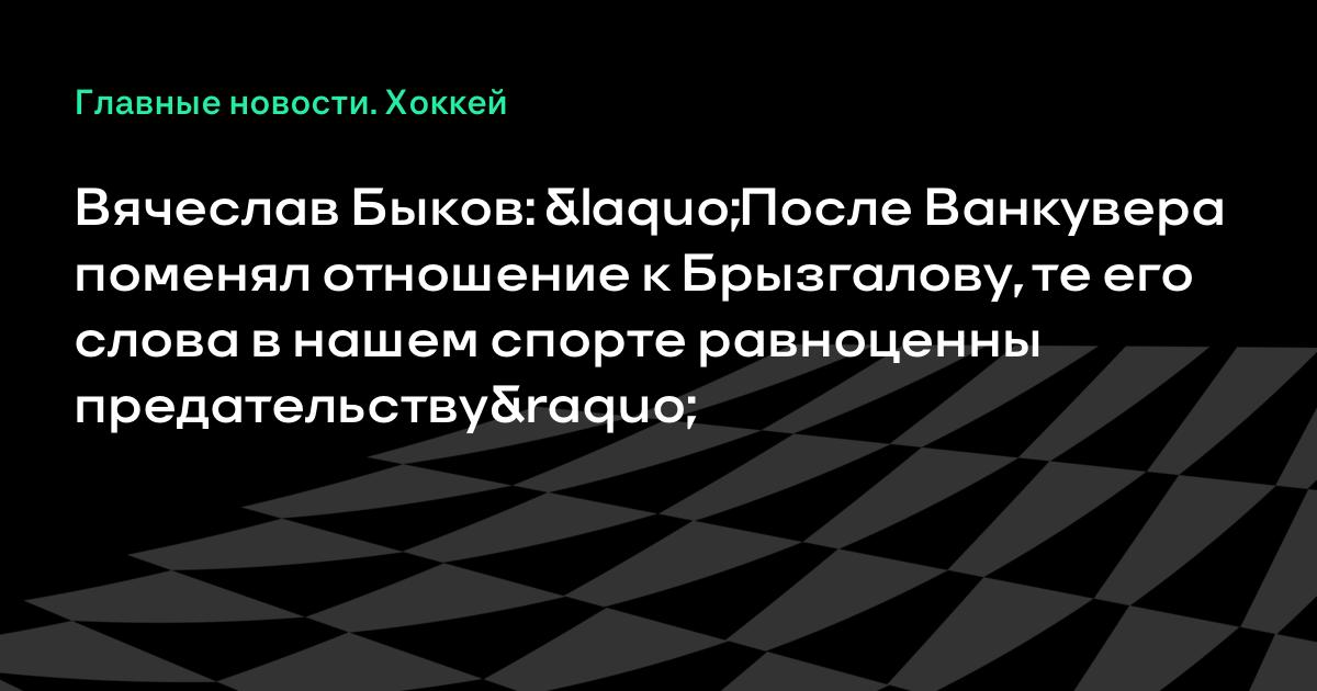 Вячеслав Быков: «После Ванкувера поменял отношение к Брызгалову, те его слова в нашем спорте равноценны предательству»