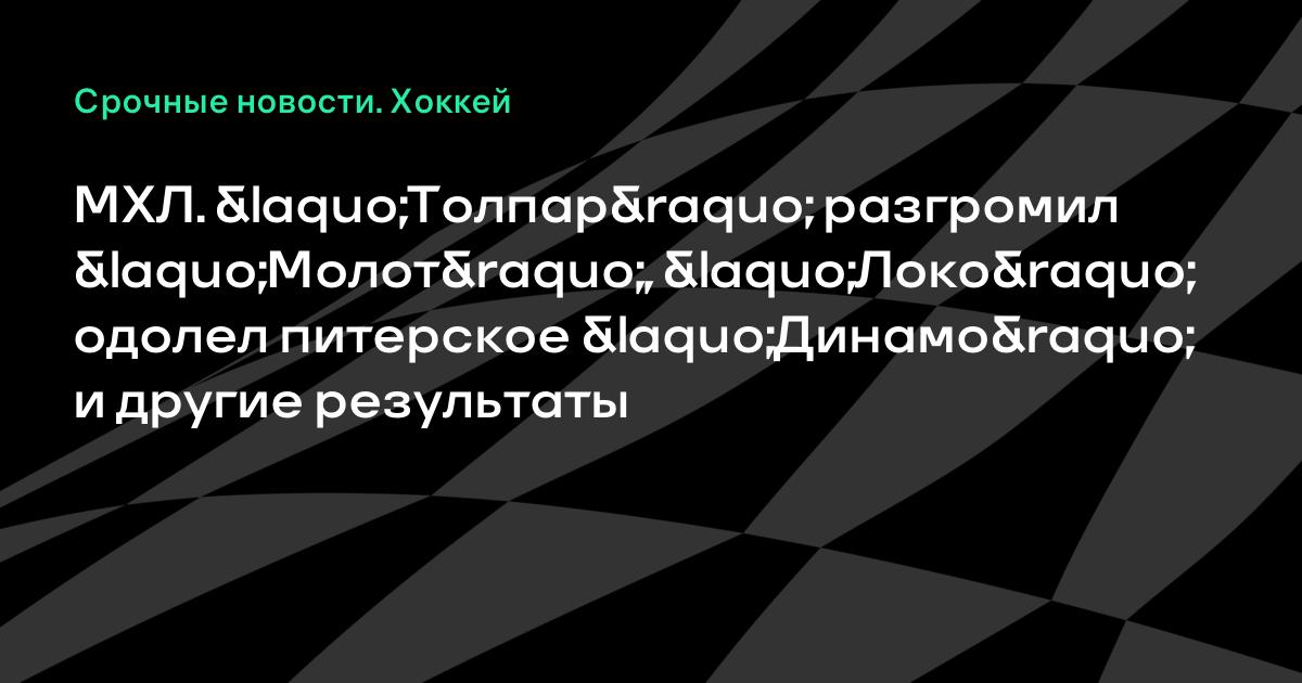 МХЛ. «Толпар» разгромил «Молот», «Локо» одолел питерское «Динамо» и другие результаты