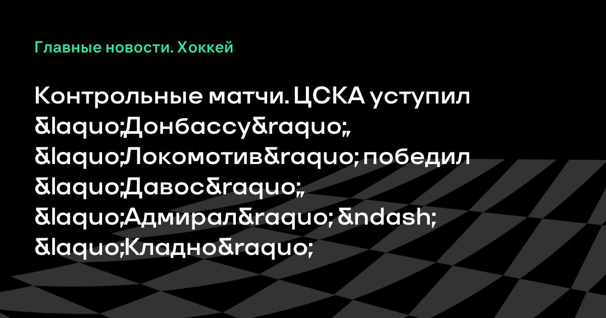 ЦСКА проиграл «Донбассу». «Локомотив» и «Адмирал» так же провели контрольные матчи. Ярославская команда переиграла «Давос» (7:4), а «Адмирал» крупно победил «Кладно» (6:1).