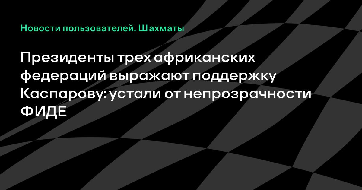 Президенты трех африканских федераций выражают поддержку Каспарову: устали от непрозрачности ФИДЕ