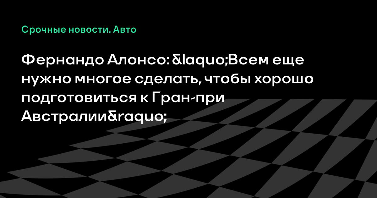 Сейчас такая фаза, когда мы постоянно учимся и с каждым кругом узнаем что-то новое. Всем еще нужно многое сделать, чтобы хорошо подготовиться к гонке в Мельбурне, поэтому будет важно каждый день выполнять максимальный объем работы», – цитирует Алонсо ESPN.