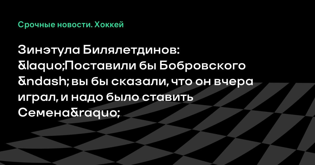 Зинэтула Билялетдинов: «Поставили бы Бобровского – вы бы сказали, что он вчера играл, и надо было ставить Семена»
