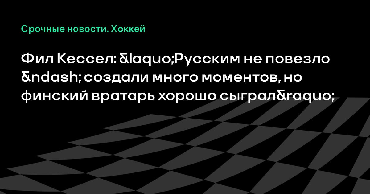 Фил Кессел: «Русским не повезло – создали много моментов, но финский вратарь хорошо сыграл»