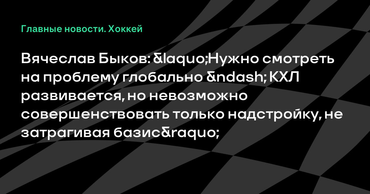 Вячеслав Быков: «Нужно смотреть на проблему глобально – КХЛ развивается, но невозможно совершенствовать только надстройку, не затрагивая базис»