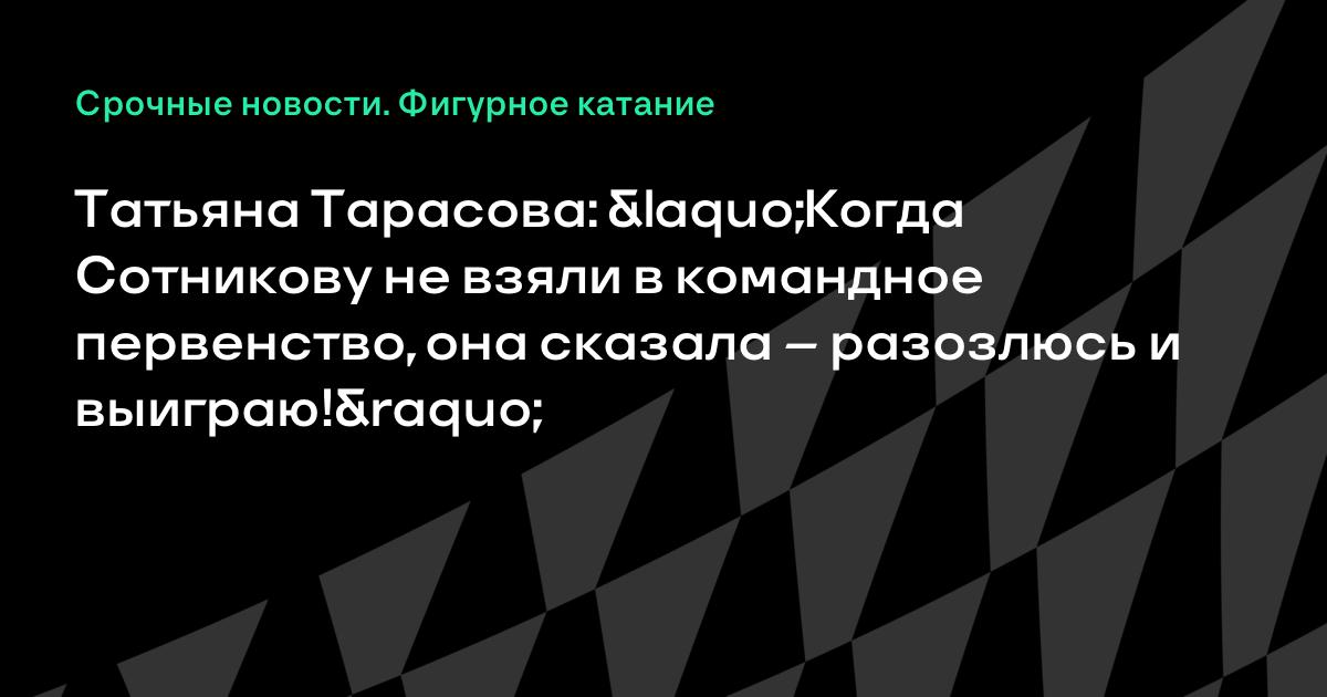 Татьяна Тарасова: «Когда Сотникову не взяли в командное первенство, она сказала – разозлюсь и выиграю!»
