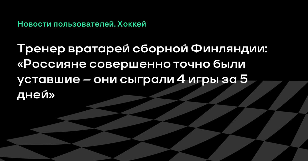Тренер вратарей сборной Финляндии: «Россияне совершенно точно были уставшие – они сыграли 4 игры за 5 дней»