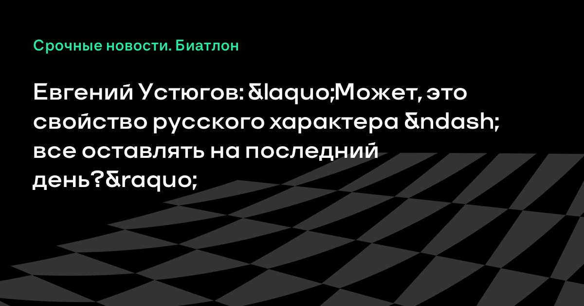 Евгений Устюгов: «Может, это свойство русского характера – все оставлять на последний день?»