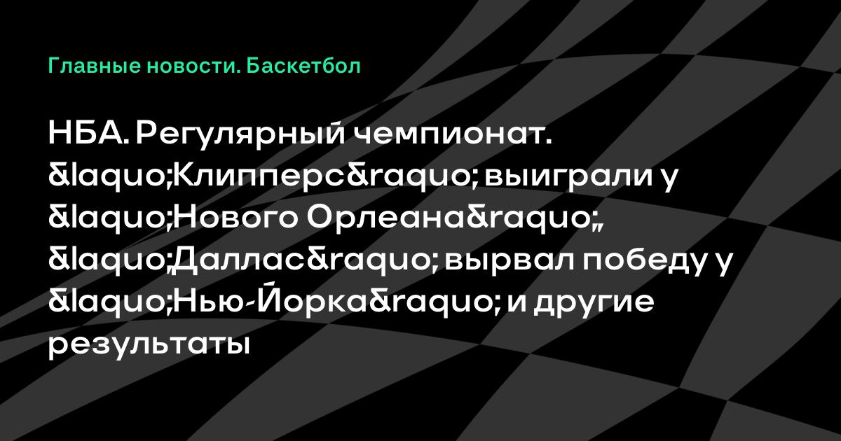 НБА. Регулярный чемпионат. «Клипперс» выиграли у «Нового Орлеана», «Даллас» вырвал победу у «Нью-Йорка» и другие результаты Сегодня в рамках регулярного чемпионата НБА состоялись пять матчей. «Клипперс» выиграли на выезде у «Нового Орлеана» (123:110). «Нью-Йорк», несмотря на 44 очка Кармело Энтони, уступил на своей площадке «Далласу» (108:110).