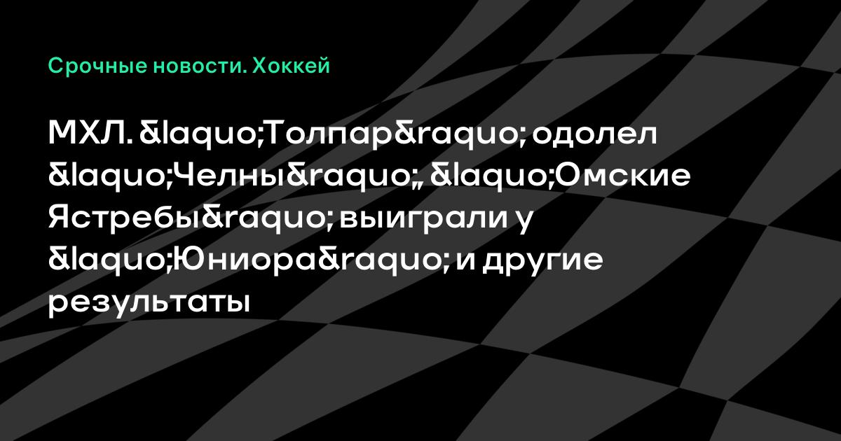 МХЛ. «Толпар» одолел «Челны», «Омские Ястребы» выиграли у «Юниора» и другие результаты