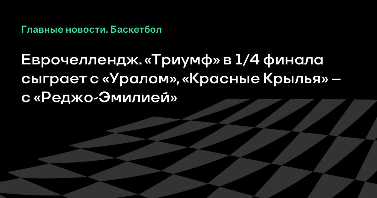 Еврочеллендж. «Триумф» в 1/4 финала сыграет с «Уралом», «Красные Крылья» – с «Реджо-Эмилией»