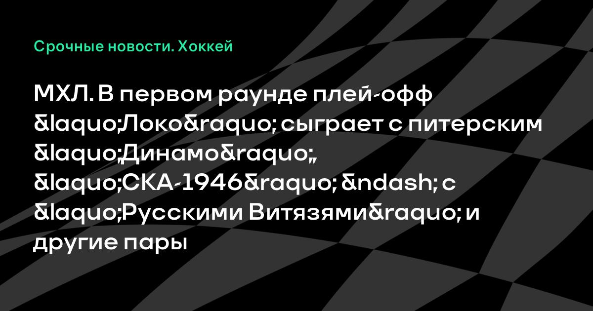 МХЛ. В первом раунде плей-офф «Локо» сыграет с питерским «Динамо», «СКА-1946» – с «Русскими Витязями» и другие пары
