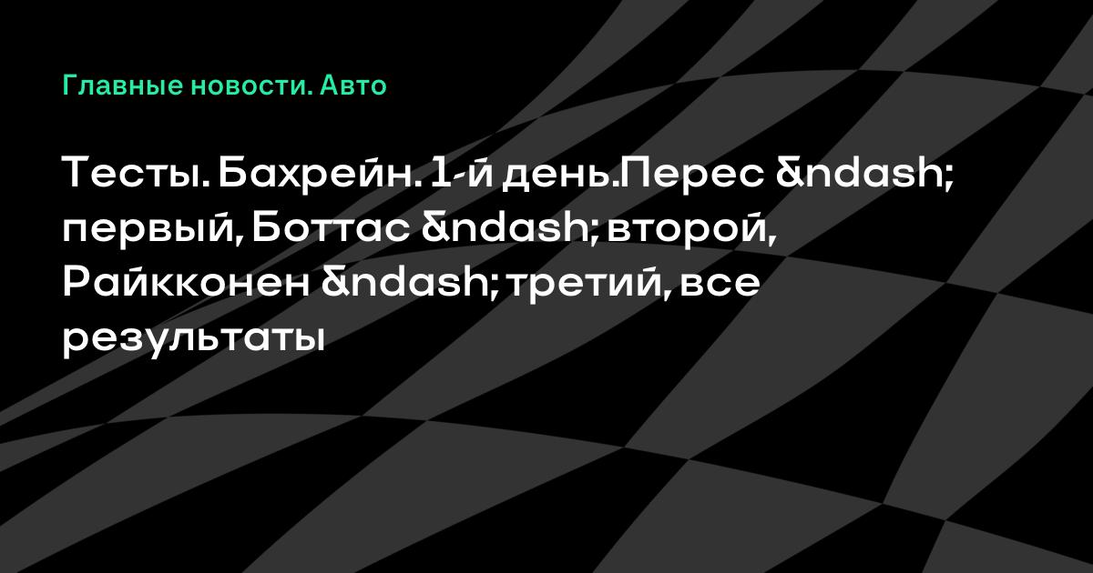 Тесты. Бахрейн. 1-й день.Перес – первый, Боттас – второй, Райкконен – третий, все результаты