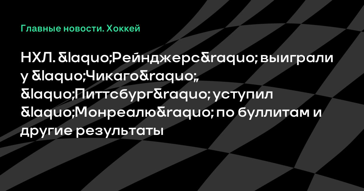НХЛ. «Рейнджерс» выиграли у «Чикаго», «Питтсбург» уступил «Монреалю» по буллитам и другие результаты