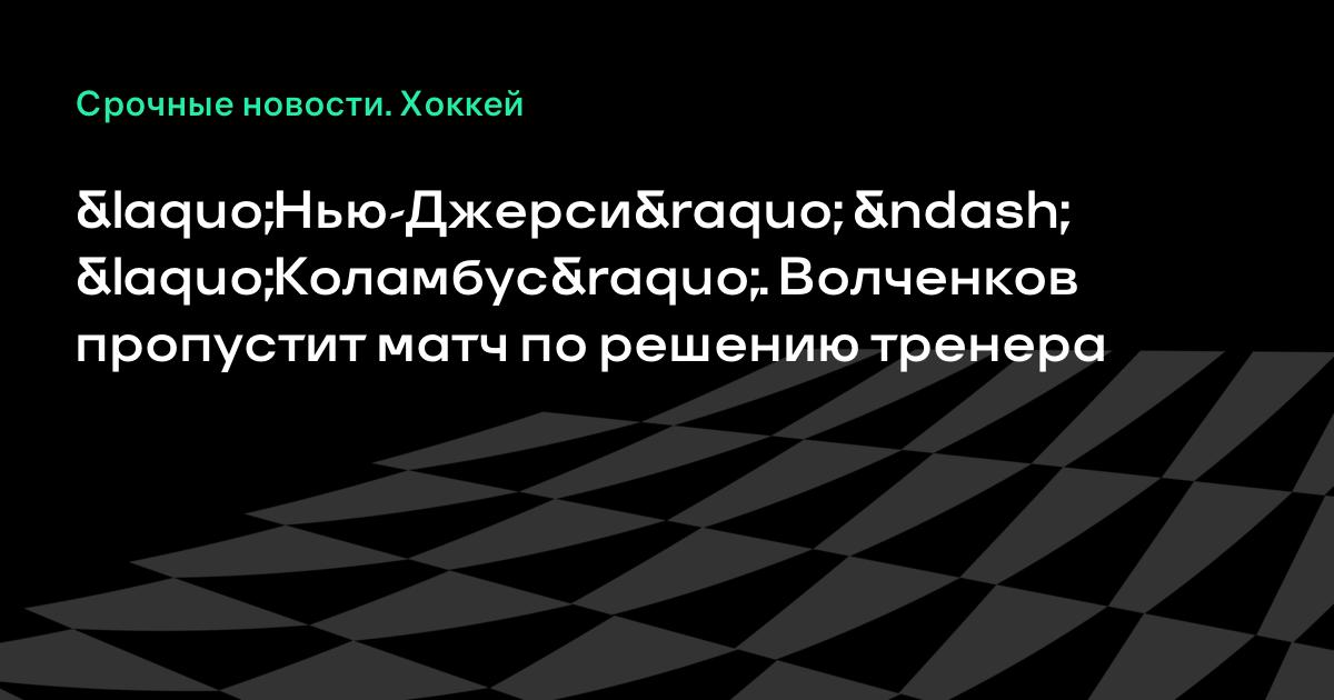 Защитник «Нью-Джерси» Антон Волченков не примет участия в матче с «Коламбусом».«Возможно, тренеры хотят использовать больше нападающих... Ничего, игр еще много», – передает слова Волченкова журналист The Star Ledger Рич Шер.
