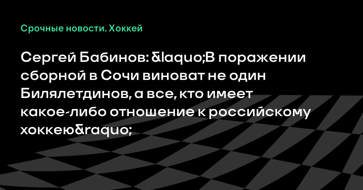 Сергей Бабинов: «В поражении сборной в Сочи виноват не один Билялетдинов, а все, кто имеет какое-либо отношение к российскому хоккею»