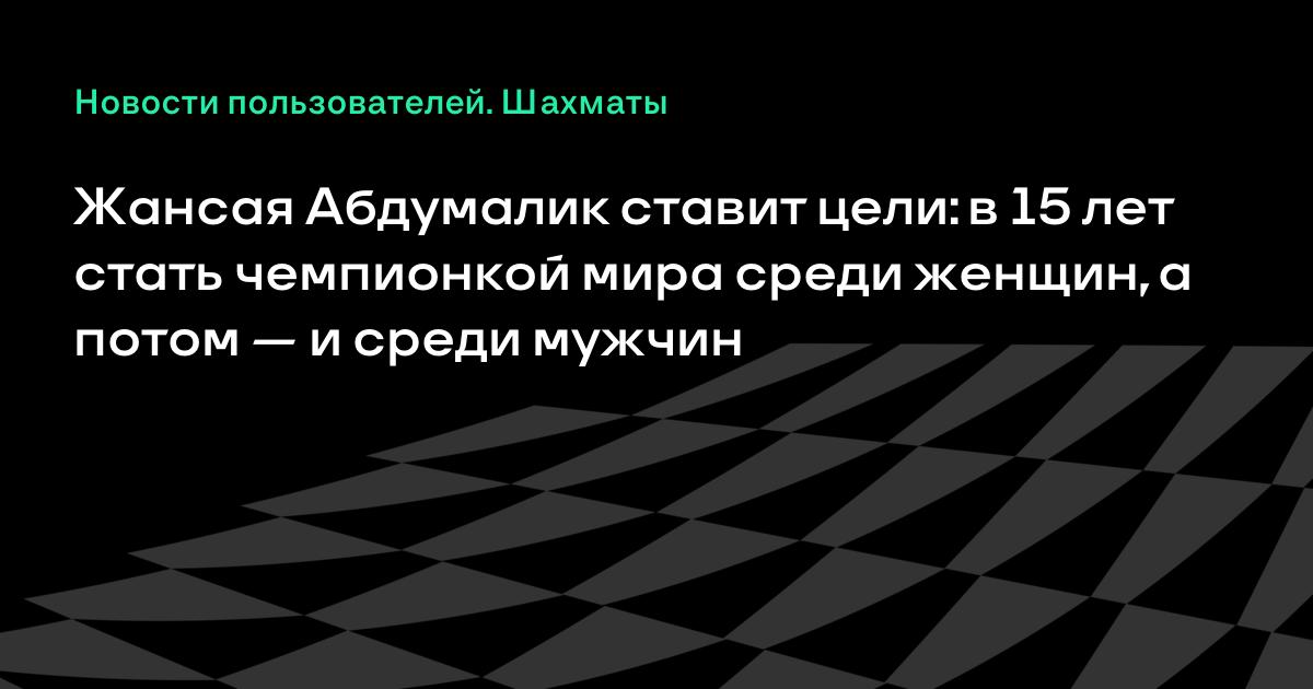 Жансая Абдумалик ставит цели: в 15 лет стать чемпионкой мира среди женщин, а потом — и среди мужчин