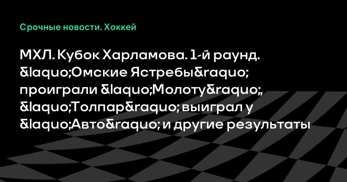 МХЛ. Кубок Харламова. 1-й раунд. «Омские Ястребы» проиграли «Молоту», «Толпар» выиграл у «Авто» и другие результаты