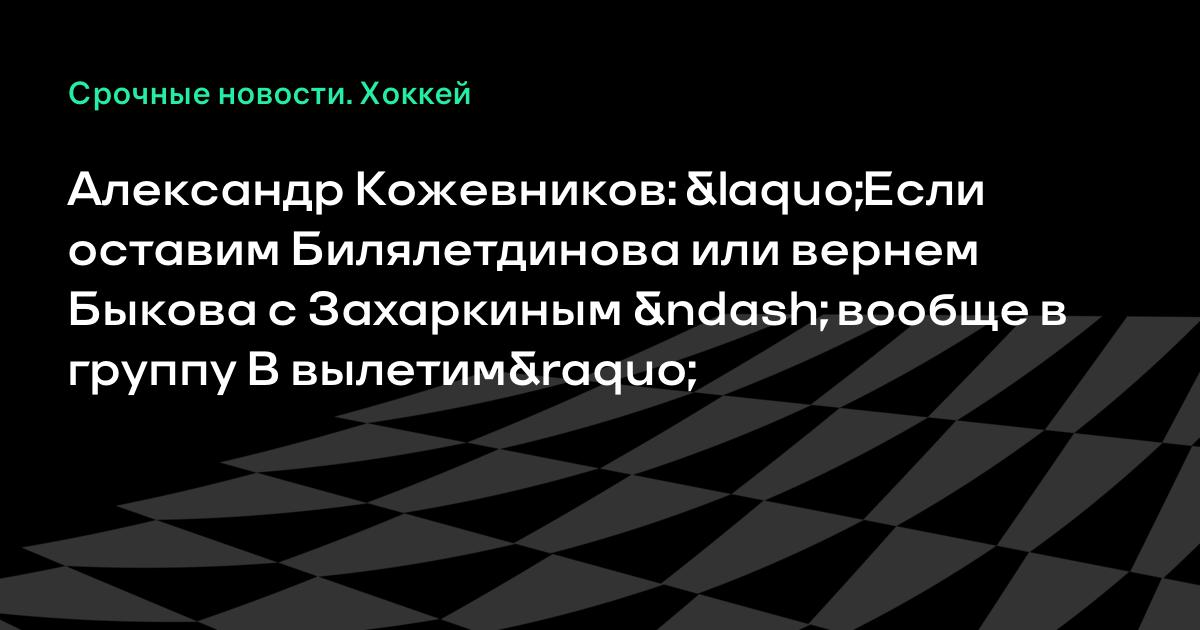 Александр Кожевников: «Если оставим Билялетдинова или вернем Быкова с Захаркиным – вообще в группу В вылетим»