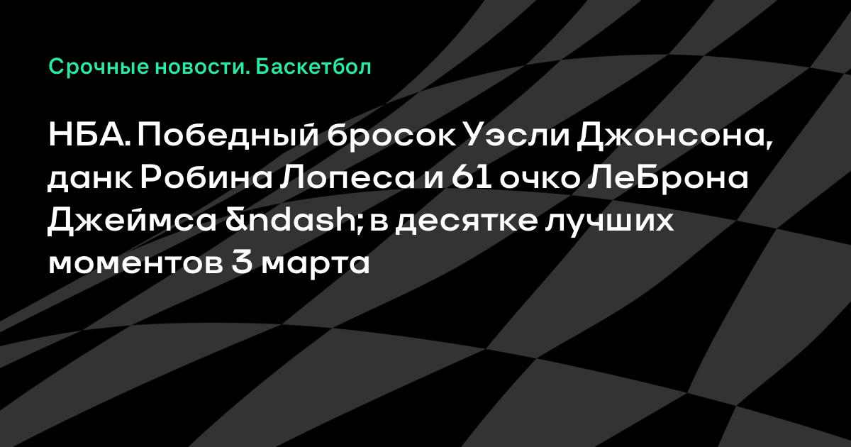 Победный бросок Уэсли Джонсона, данк Робина Лопеса и 61 очко ЛеБрона Джеймса – в десятке лучших моментов 3 марта.