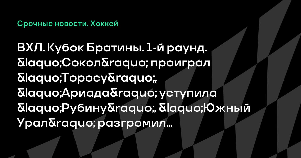 ВХЛ. Кубок Братины. 1-й раунд. «Сокол» проиграл «Торосу», «Ариада» уступила «Рубину», «Южный Урал» разгромил «Нефтяник»