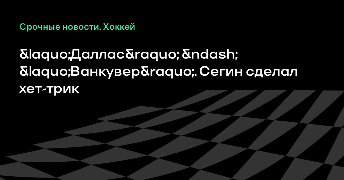 Форвард «Далласа» Тайлер Сегин отметился третьим в нынешнем сезоне хет-триком в матче с «Ванкувером» (6:1).