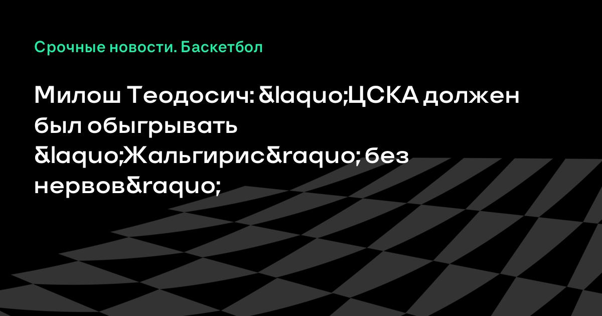 Милош Теодосич: «ЦСКА должен был обыгрывать «Жальгирис» без нервов»