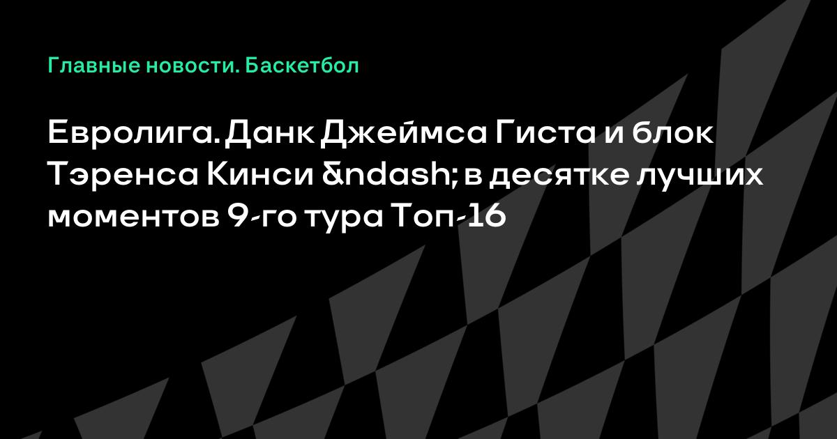 Данк Джеймса Гиста и блок Тэренса Кинси – в десятке лучших моментов 9-го тура Топ-16 Евролиги.