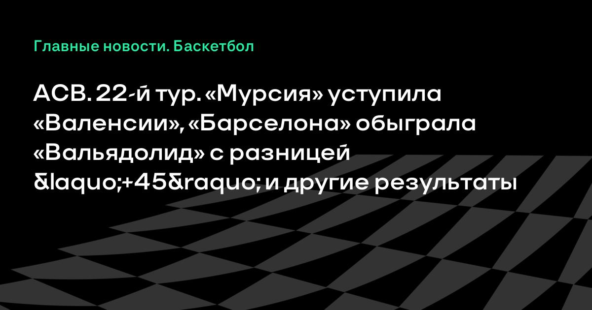 ACB. 22-й тур. «Мурсия» уступила «Валенсии», «Барселона» обыграла «Вальядолид» с разницей «+45» и другие результаты