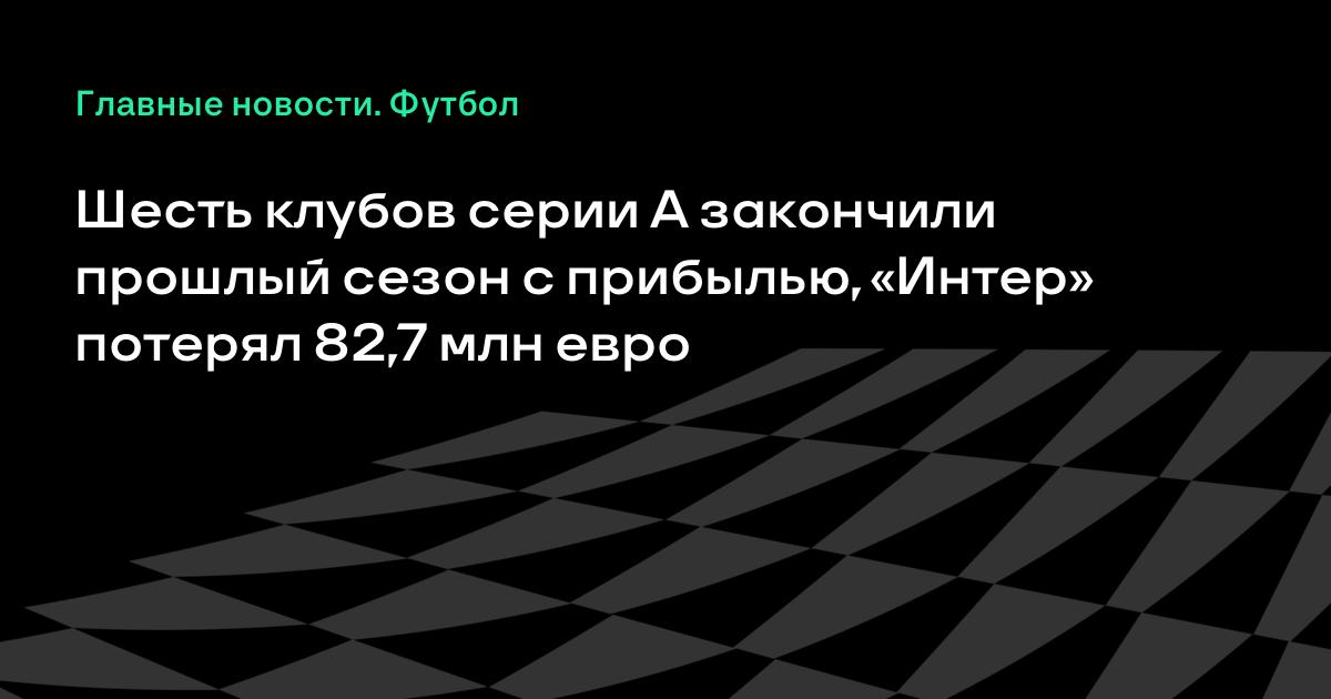 Шесть клубов серии А закончили прошлый сезон с прибылью, «Интер» потерял 82,7 млн евро