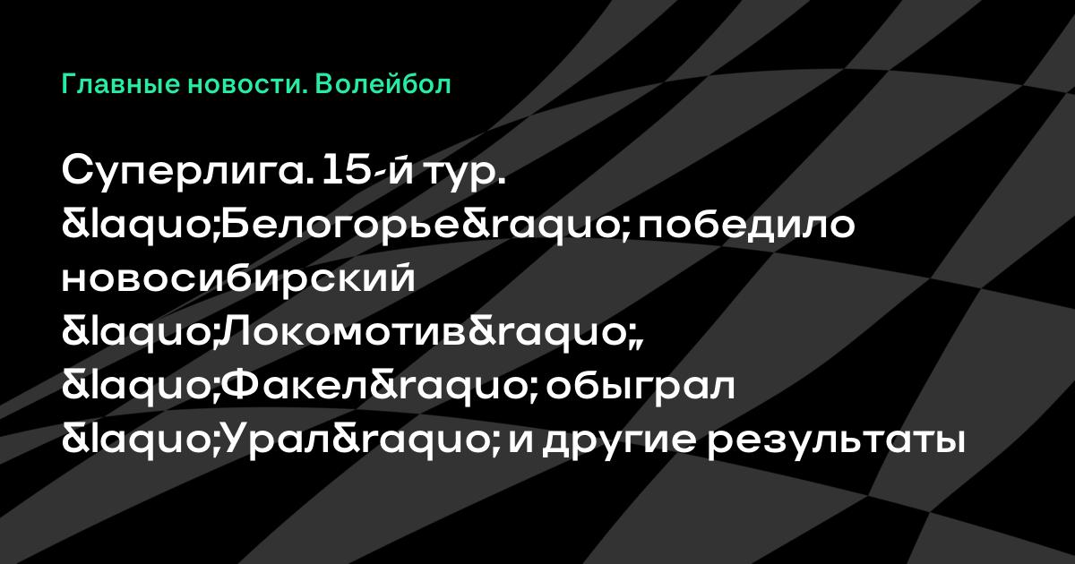 Сегодня состоялся 15-й тур мужской волейбольной Суперлиги. «Белогорье» победило новосибирский «Локомотив» (3-0), «Факел» обыграл «Урал» (3-2).