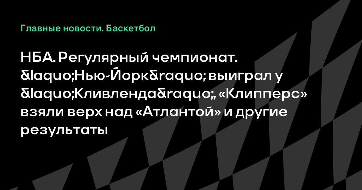 НБА. Регулярный чемпионат. «Нью-Йорк» выиграл у «Кливленда», «Клипперс» взяли верх над «Атлантой» и другие результаты Сегодня в рамках регулярного чемпионата НБА состоялись шесть матчей. В Кливленде во встрече соседей по турнирной таблице Восточной конференции «Никс» одержали победу над «Кавальерс» (107:97). «Клипперс» удалось продлить победную серию в игре с «Атлантой» (109:108).