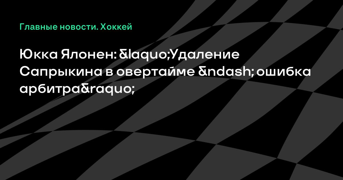 Юкка Ялонен: «Удаление Сапрыкина в овертайме – ошибка арбитра»