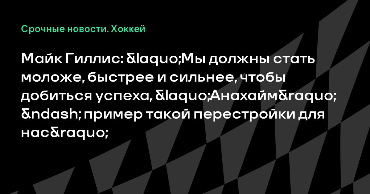 Майк Гиллис: «Мы должны стать моложе, быстрее и сильнее, чтобы добиться успеха, «Анахайм» – пример такой перестройки для нас»