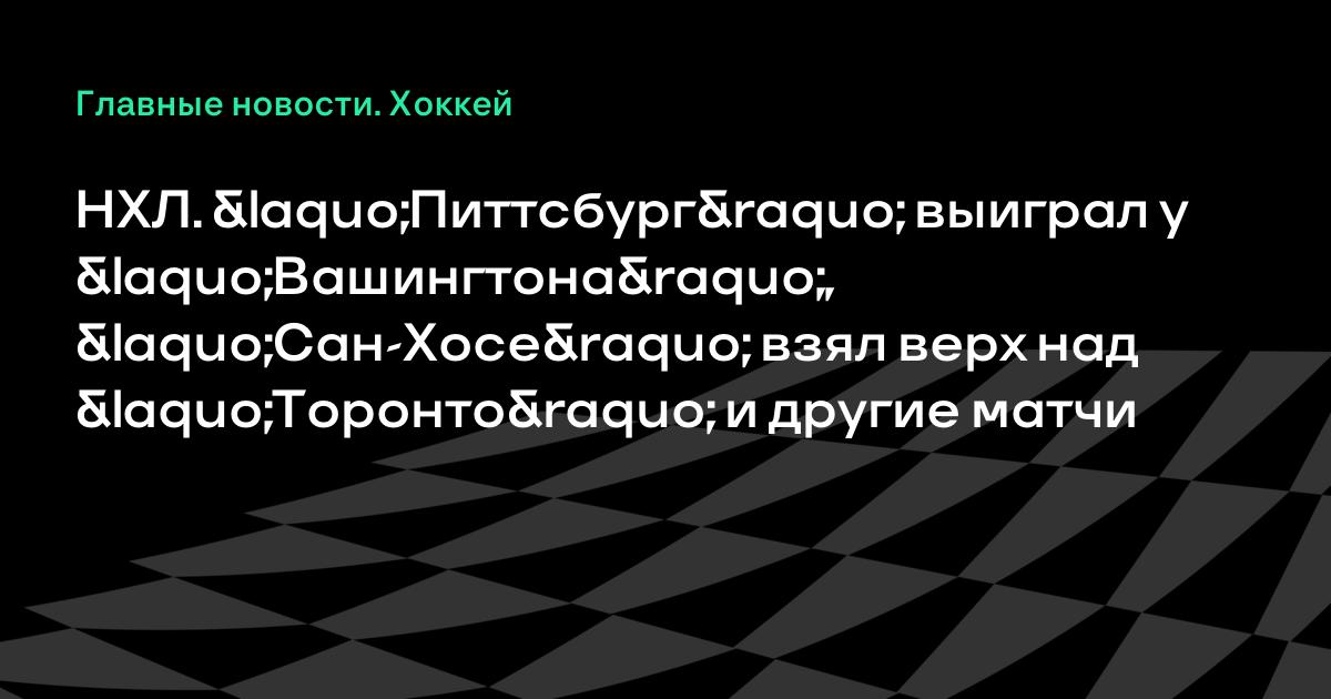 НХЛ. «Питтсбург» выиграл у «Вашингтона», «Сан-Хосе» взял верх над «Торонто» и другие матчи